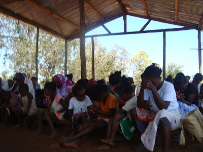 We arrived at Matsaborimanga (Matsabori=Lake manga=mango) and about 25 adults and 25 children gathered to hear the Word of God proclaimed. Michael shared the story of creation to Christ and at the end offered an invitation to receive the free gift of salvation. Derao ny Tompo!! (Praise the Lord!!) 11 of the people prayed to receive Jesus and have asked for more teaching.